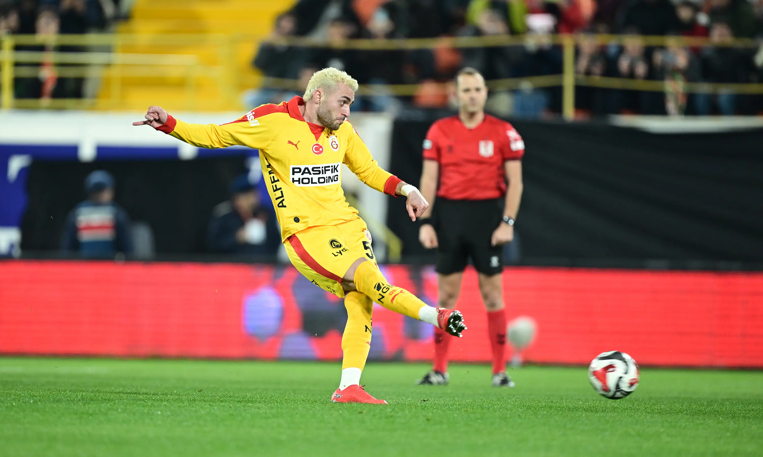 4' Fatih Aksoy ceza sahası içerisinde Barış Alper Yılmaz'ı düşürdü ve Galatasaray penaltı kazandı.