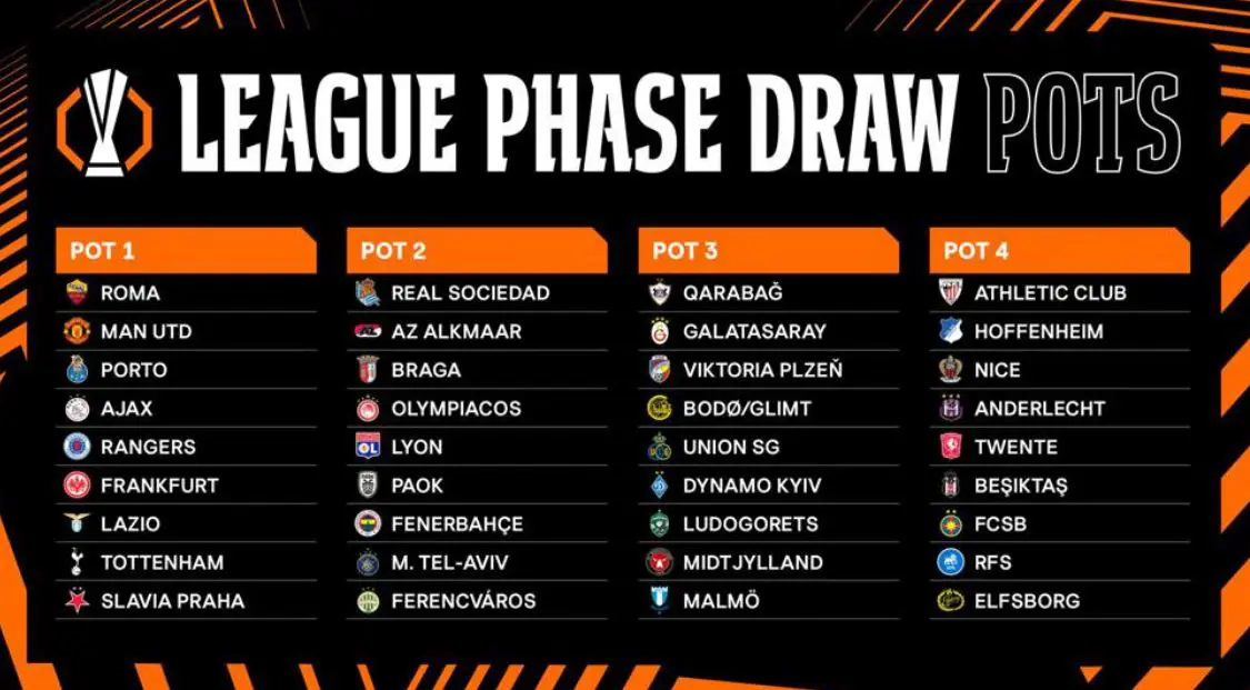 1. Torba: Roma, Man United, Porto, Ajax, Rangers, Eintracht Frankfurt, Lazio, Tottenham, Slavia Prag