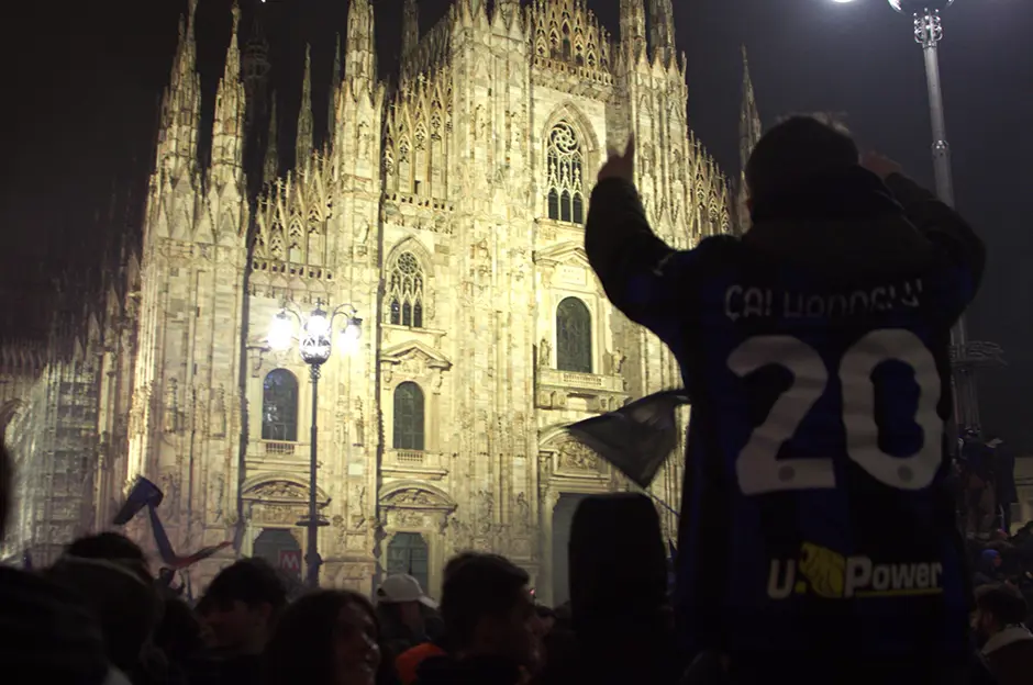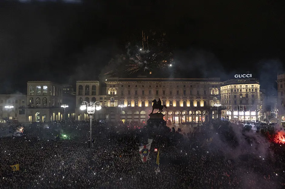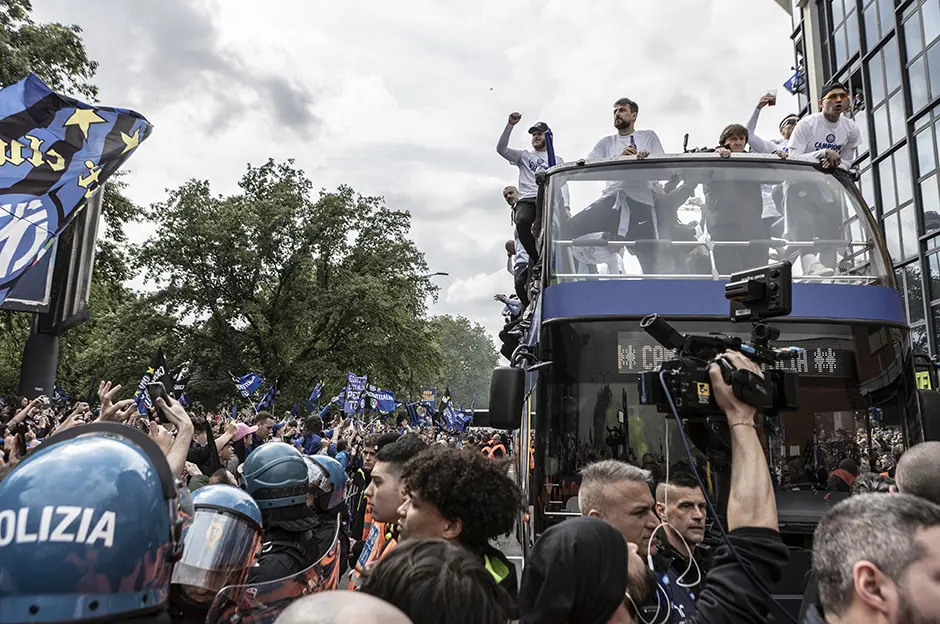 Interli oyuncular ve teknik heyeti taşıyan iki üstü açık otobüs, geniş güvenlik önlemleri altında ve mavi-siyahlı taraftarların sevgi gösterisi eşliğinde Giuseppe Meazza Stadı'ndan kent merkezindeki Duomo Katedrali'ne kadar Milano caddelerinde şampiyonluk turu attı.