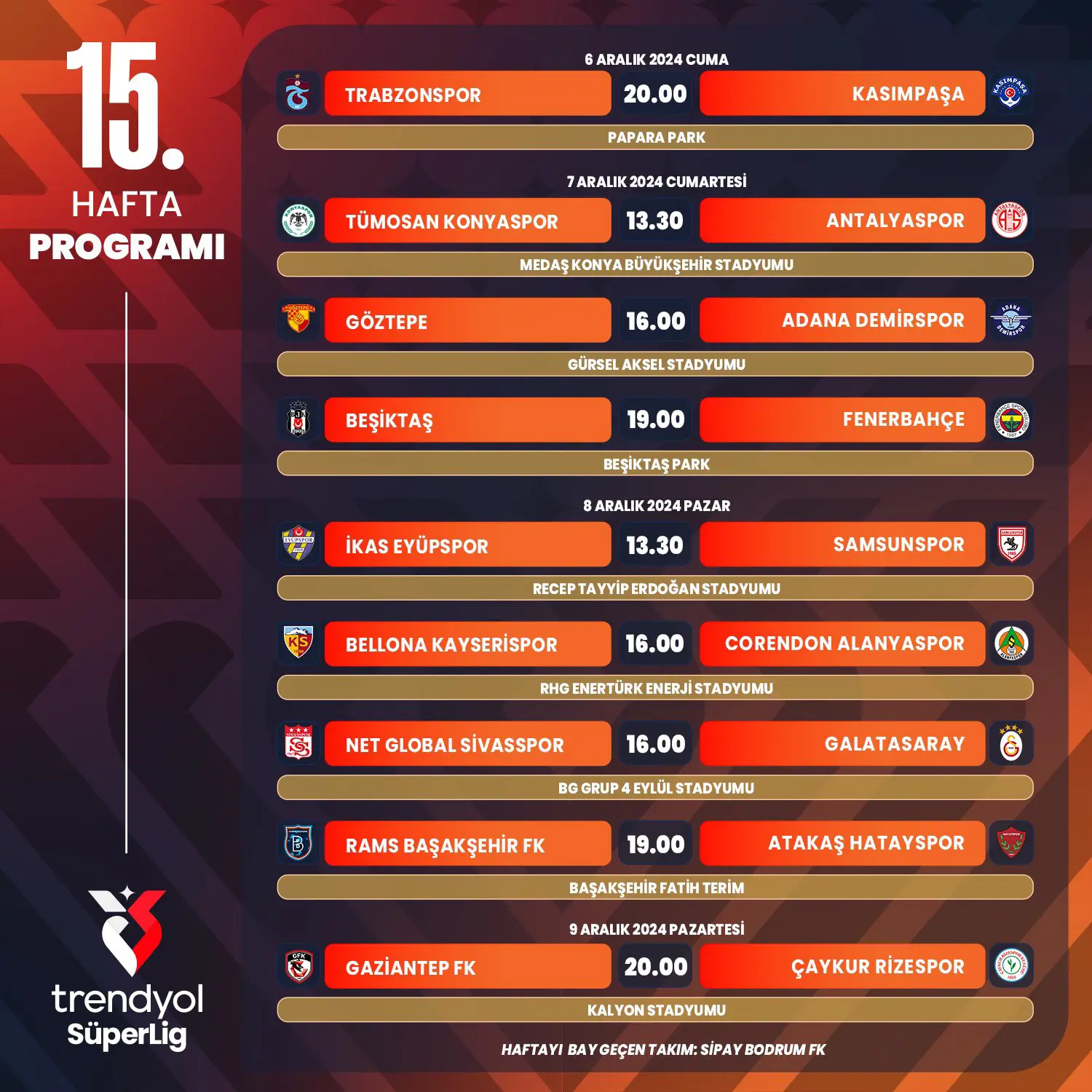 SON DAKİKA HABERİ: Türkiye Futbol Federasyonu, Süper Lig'de oynanacak 7 ve 17. haftaların programını açıkladı.