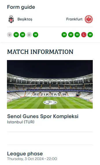 UEFA, Avrupa Ligi'nde Beşiktaş'ın Eintracht Frankfurt ile oynayacağı maçın bilgilerinde stadyum ismini yanlış yazdı. Beşiktaş, bu hatanın ardından UEFA'dan değişiklik yapılmasını talep etti.