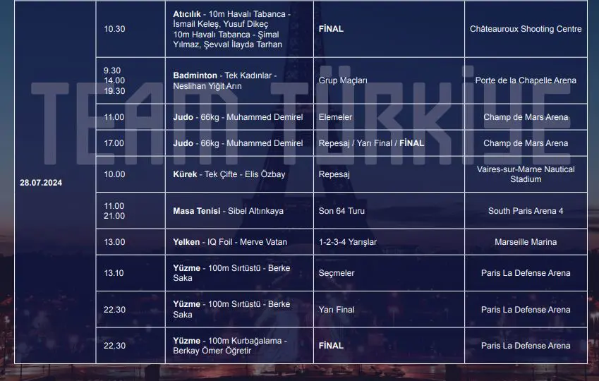 PARİS 2024 YAZ OLİMPİYAT OYUNLARI YARIŞMA PROGRAMI İÇİN TIKLAYINIZ